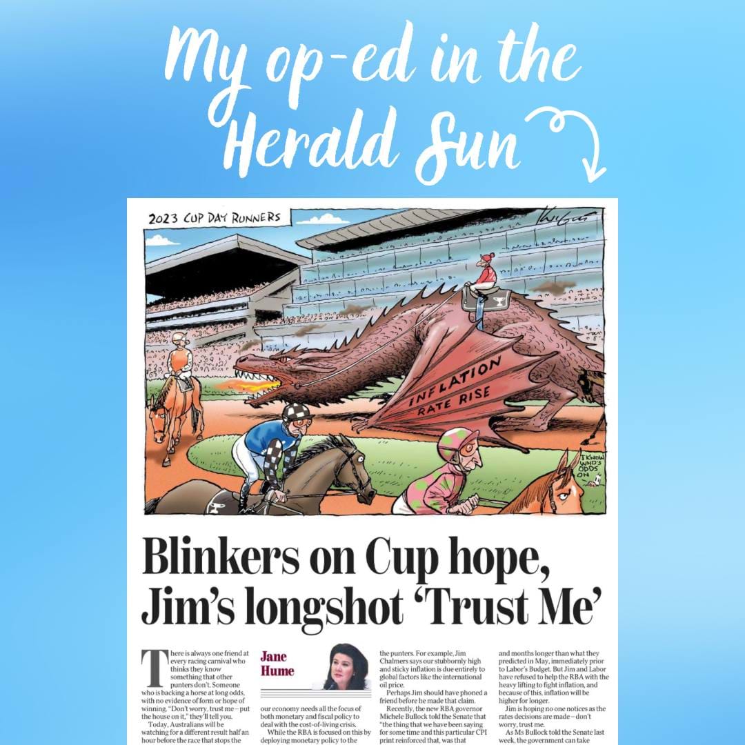 But Jim and Labor have refused to help the RBA with the heavy lifting to fight inflation, and because of this, inflation will be higher for longer. Jim is hoping no one notices as the rates decisions are made - don’t worry, trust me.